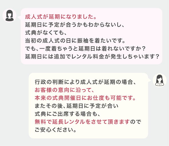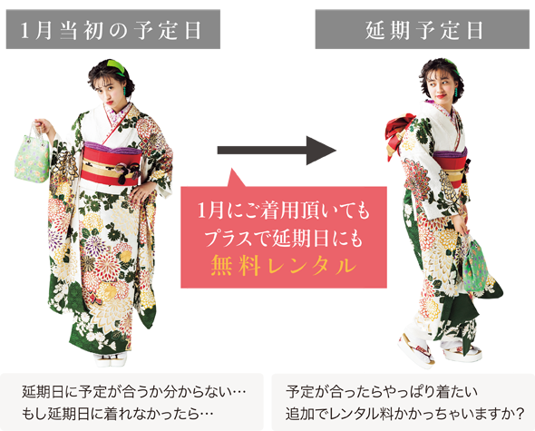 当初の成人式も延期の予定日も二重に無料レンタル保証