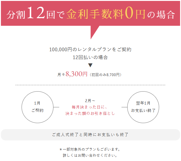 振袖2 レンタル価格10万円の場合、