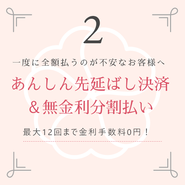 「一度に全部払ってしまうのが少し不安」、「他にも出費が重なっていて…」というお客さまもご安心ください。